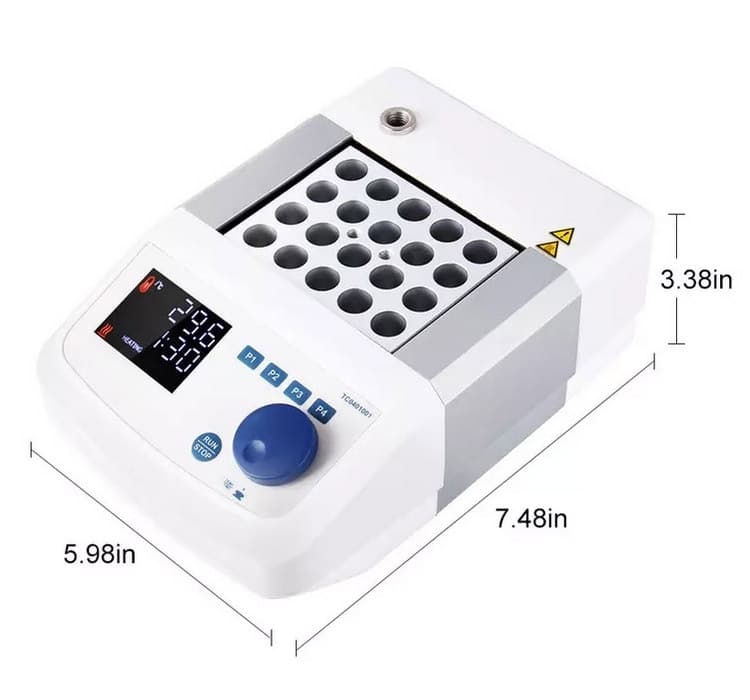 - Temperature Control: The heating block offers an adjustable temperature range from room temperature +5°C to 150°C. This wide range ensures the precise control needed for various experiments.